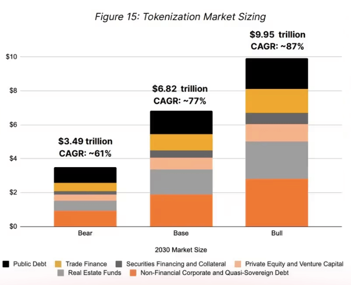 Most of this projected growth is expected to come from the tokenization of traditional assets, namely currencies, stocks and bonds.